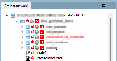In the directory tree at root level (...\23dlibs), call up the context menu (secondary mouse button) and select the Download catalog from server command under Version management [Versioning system].