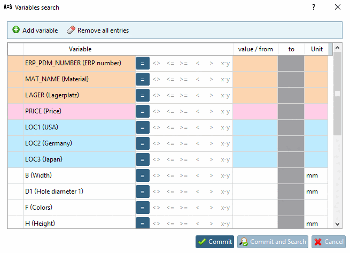 See Section 3.1.6.4.5, “ Variables search ” in ENTERPRISE 3Dfindit (Professional) - User for details.