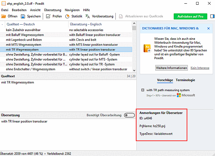 Export the translation files from PARTproject via the context menu command under Translation -> Create XLIFF files with translations [Export XLIFF for translation].