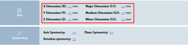Example for global attribute group "size": xDim, yDim, zDim, minorDim, mediumDim, majorDim