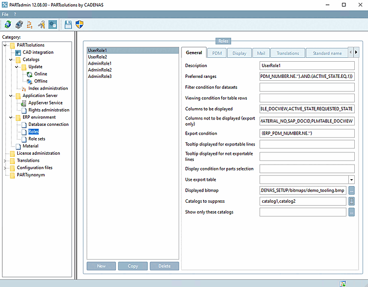 PARTadmin → Category → PARTsolutions → ERP environment → Roles