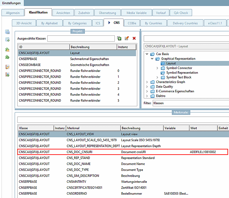 2. The unique identifier is taken from the source file (e.g. PDT) and entered in the CNSCAX|GFX|LAYOUT class in the " CNS_DOC_CNSURI " characteristic.
