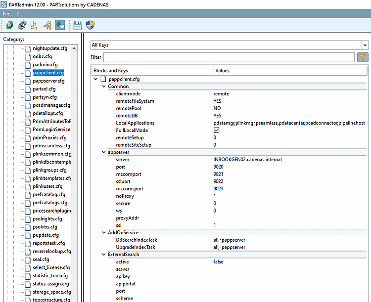 pappclient.cfgis not evaluated, but all settings are taken from the variable CADENAS_APPSERVER.Then there is a check what should run via Appserver:
