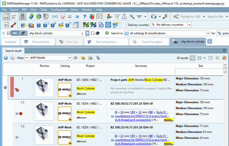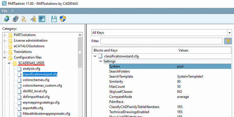 The selection of the desired mode happens in PARTdataManager under Extras menu -> Select mode. The default mode is stated in $CADENAS_DEFAULTUSER/partsolu.cfg -> block [TWEAKMENU] -> key "PARTdataManager_Mode" or "PARTproject_Mode". The respective menu item is displayed, if the key ModePreferences is set on true in the respective block.