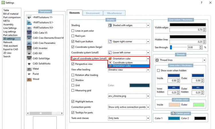 Automatic recalc on/off Display / hide options for DIN 962 standards Show/hide parts that should be avoided Functional control happens in partsol.cfg -> Block [EOLService].