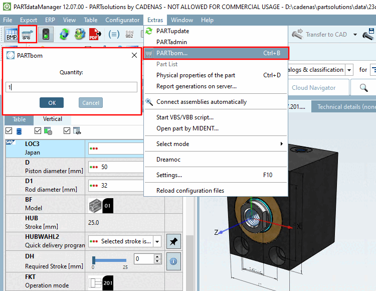 Click on the Transfer to parts list (PARTbom) [Transfer to Bill of Materials (PARTbom)] button in the toolbar