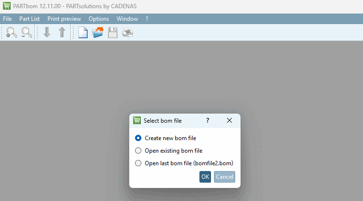 -> PARTbom is started and the Select parts list [Select bom file] query dialog appears.
