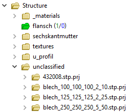 Folder with unclassified parts and structure in order to include the parts to be classified.