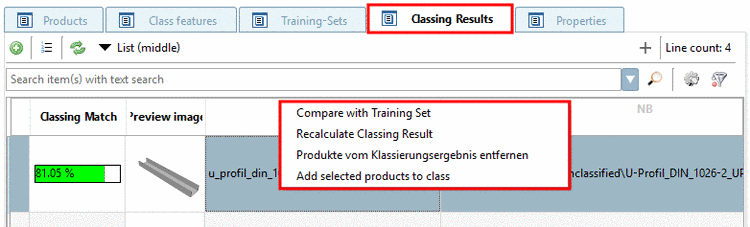 In order for a user to be able to class products semi-automatically, Training-Sets have to be determined for classes initially. For this, a product to be used as Training-Set is drawn via Drag & Drop to "Structure" or added via context menu command Add product to Training-Set.
