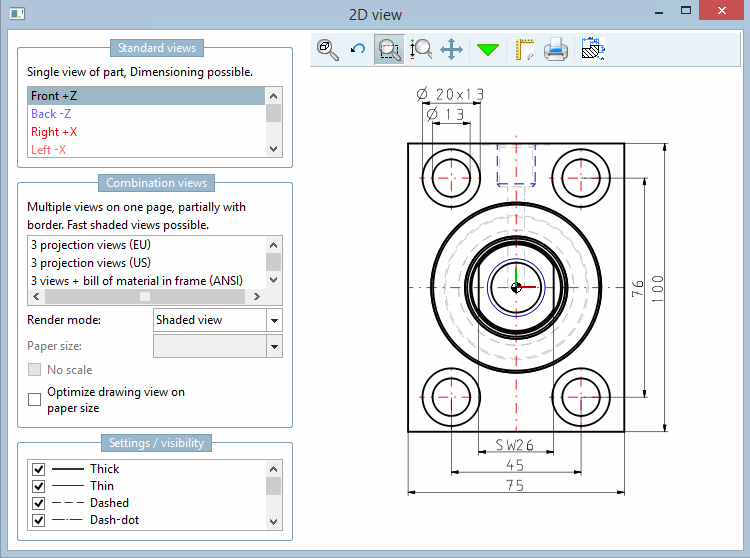 2D derivation dimensionings are overtaken. When exporting to a 2D CAD system