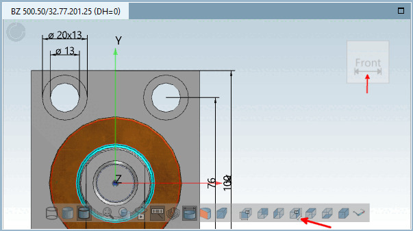Views that contain a dimensioning can be recognized by an additional dimensioning line in the 3D toolbar