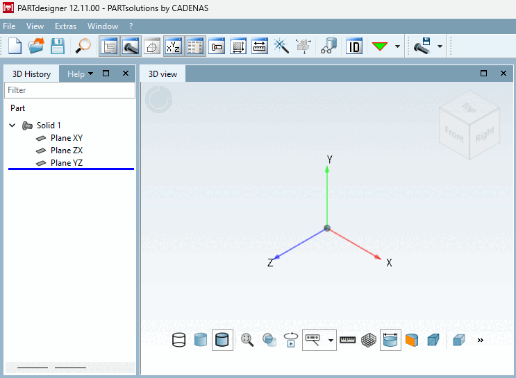 PARTdesigner opens in geometry and table mode ( [Save location] " In geometry and table " storage location [Save location] ).