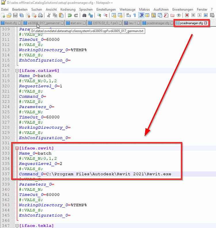pcadmanager.cfg(CADENAS_SETUP), in the block [iface.revit], the key "Command_0" must contain theRevit.exeto the local installation.The used Revit version has to be activated under PARTadmin -> CAD integration -> Revit XY Version -> .