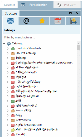 The directories and projects in the catalog index are colored green or semi-transparent according to the condition under Display condition for part selection [Display condition for parts selection].[69] Green means that at least one line in a project corresponds to the condition under CONDITIONTREE or display condition for part selection [Display condition for parts selection]. Green is "inherited" upwards in a direct line. Semi-transparent means that no line of any project meets the condition.