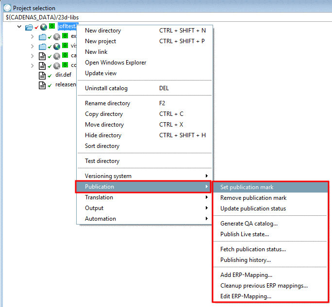 In the Update manager, the complete catalog structure is displayed. Single projects or whole directories can be selected and edited.