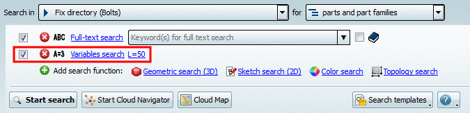 In the Variables search dialog box all those variables are displayed, which are common to all parts, down from the selected directory level (ERP variables - if available - colored).