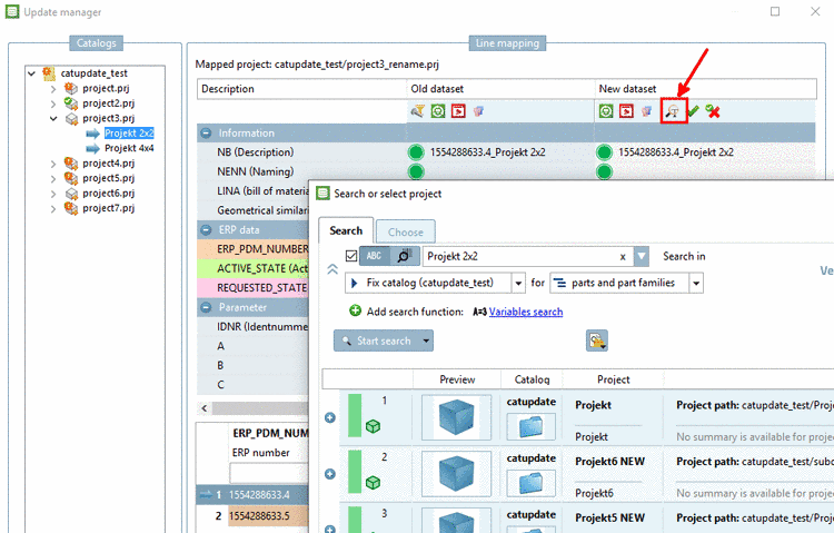 At project 3 mapping was possible although the project name changed. You can see the name of the old project in the index tree and the name of the new project under Line mapping -> Assigned project.