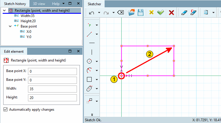 Creation of a rectangle via base and diagonal end point [End point]