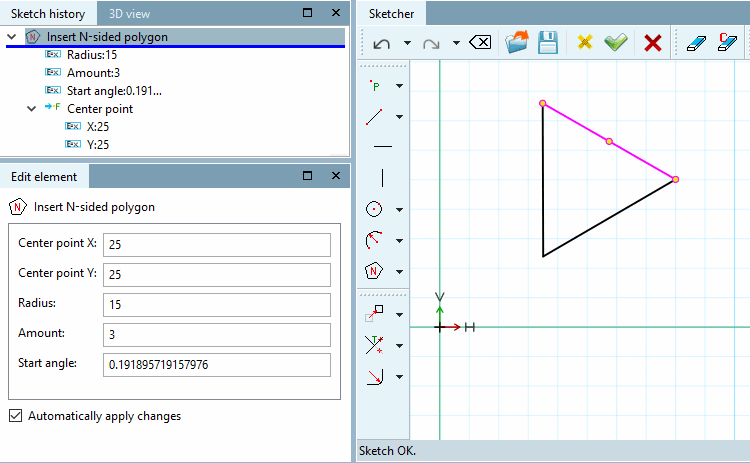-> The individual values of the N-corner are displayed in the Edit element docking window and can be adjusted if necessary.