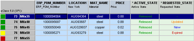For parts with an ERP number and "Requested status [Requested status] " Expired, the status display is yellow.