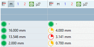 If you activate a checkbox, the corresponding parameter is highlighted in color under Tabular comparison [Tabular Compare] and in the 3D comparison. Different features are given different colors (regardless of whether they were selected automatically or manually).