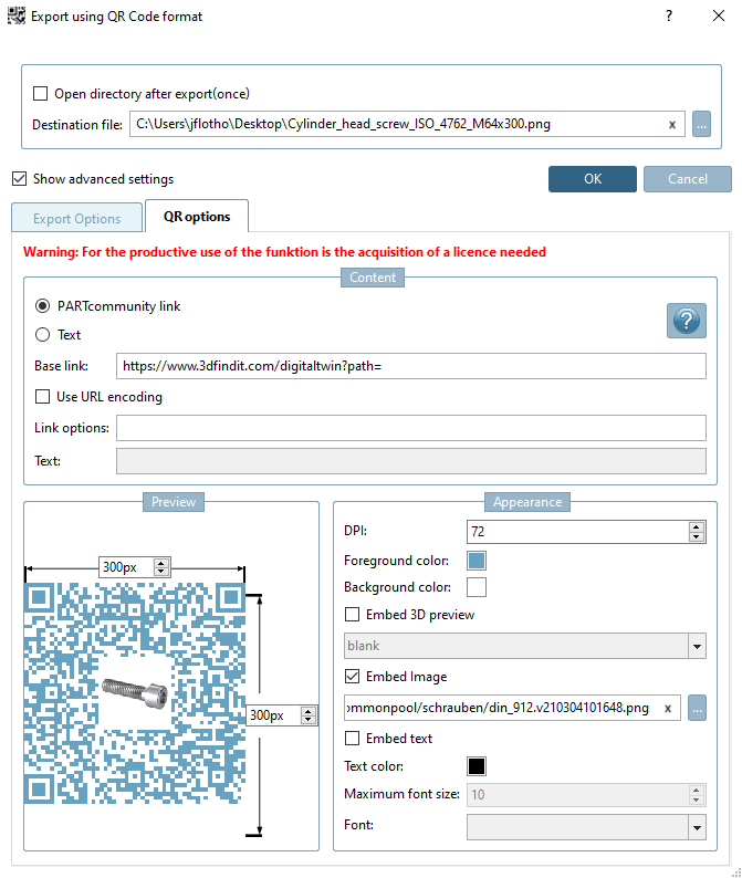 If PARTcommunity Link [PARTcommunity link] is selected, the base link, the project path and the link options are automatically put together.