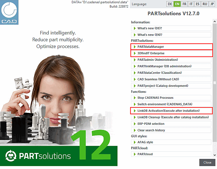 [8] The configuration files required for the ERP demo environment are copied to the CADENAS_SITESETUP directory.