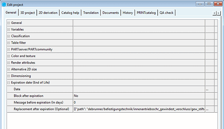In PARTproject you will find the result under Edit project -> General tab -> Expiry date (End of Life) [Expiration date (End of Life)] -> Replacement after expiry (optional) [Replacement after expiration (Optional)] -> Define replacement projects dialog -> Edit rules [Edit rule set] tab.