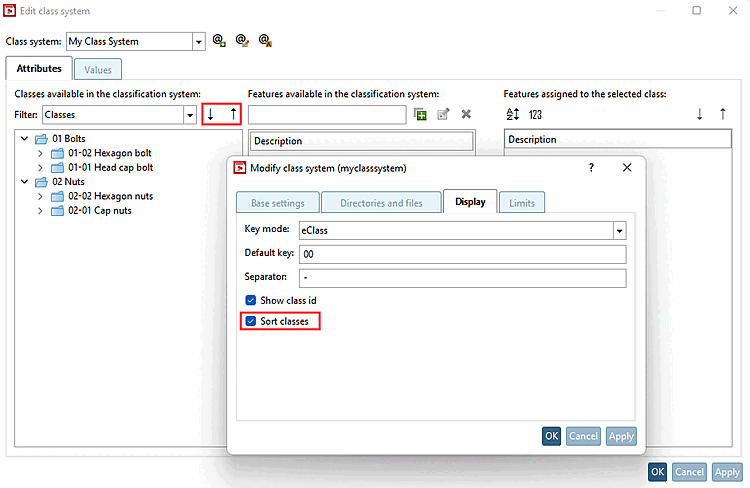 The function is executed immediately when Sort classes is activated and the sort arrows are activated. (The function was already available with V12.8, automatic activation was added with V12.9).