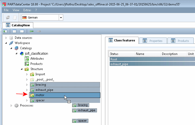 In the following example, in an already existing structure, the class "Motor" with some subclasses shall be created.