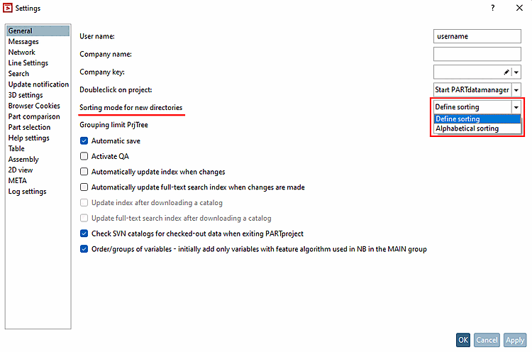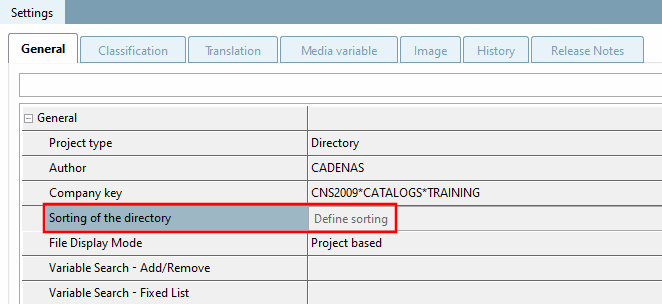 When a new directory is created, Set sorting [Define sorting] is automatically set by default.