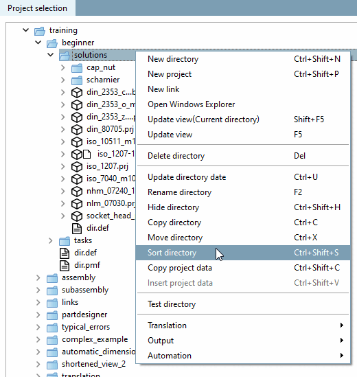 Call up the context menu command Sort directory.