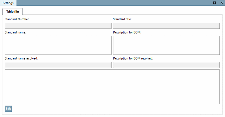 *.tab: After selection, empty project details are displayed under Edit project. Use to open PARTdesigner to create the characteristic attribute table. See Chapter 7, PARTdesigner .