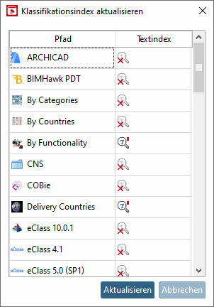 To ensure that the classification dialogs in PARTproject display the correct data for the projects, the classification index must be updated.