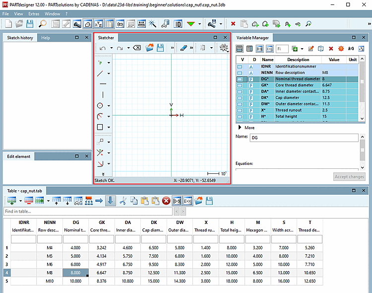 When creating your drawing, use the notes in the footer of the PARTdesigner. There you can always find out about the status of the drawing or the next step. |