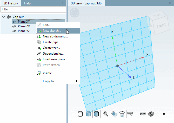 steps, the 2D sketch of the cap nut shall be created as shown below.
