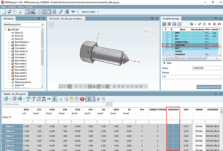 Create the variable CNSAVOID in PARTdesigner, create the variable CNSAVOID in the table.
