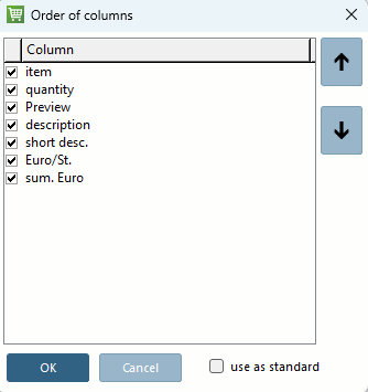 Use as default [use as standard] specifies whether the currently set sequence and selection for this form type (e.g. "Neutral") should be used as the default setting for files created in the future.
