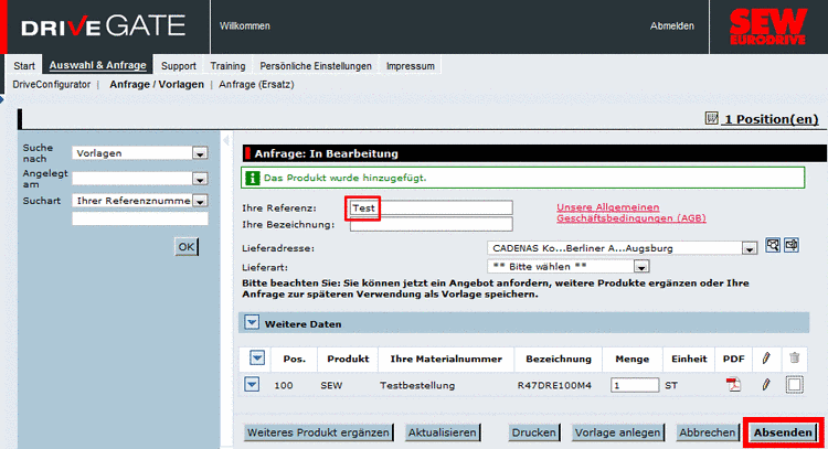 Rufen Sie im SEW (Online) Katalog den Assistenten auf.