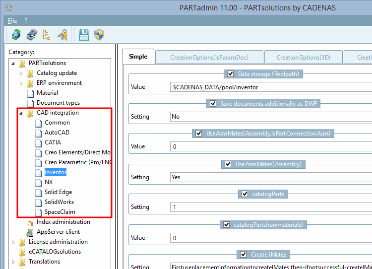 Using this filter only works if the SITESETUP has been activated. On this see Section 1.7.6, “ $CADENAS_SITESETUP”.