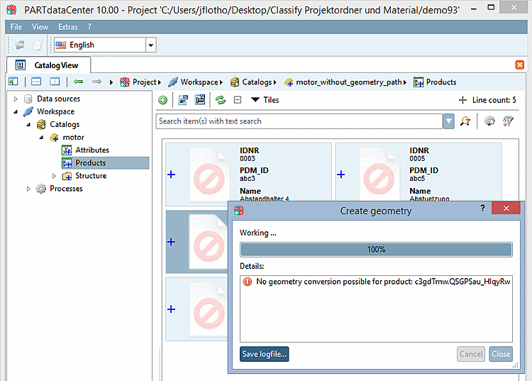 Select the appropriate option (in this example, the preview image and geometry (.zjv) should only be generated for the selected product) and confirm by clicking .