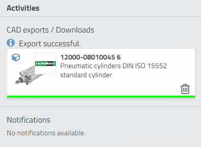 -> The Activities dialog box opens and you are notified that the export is in progress.