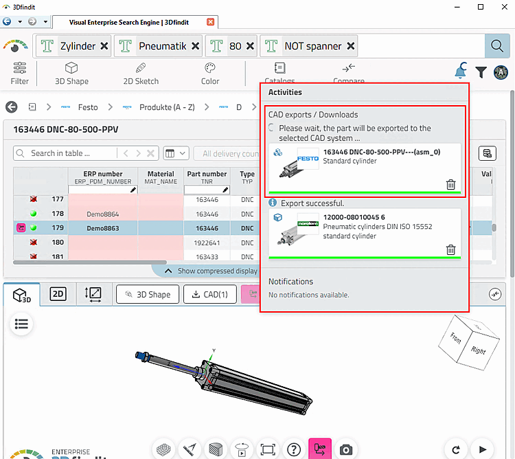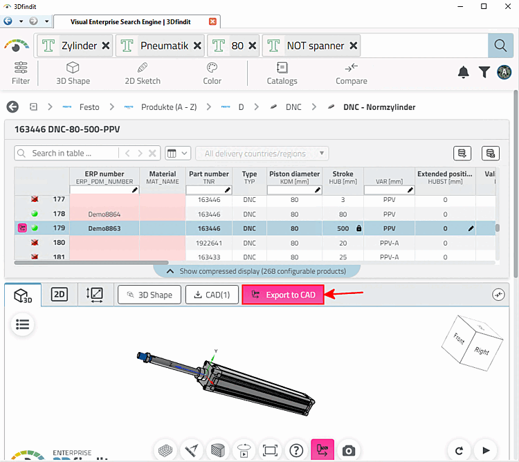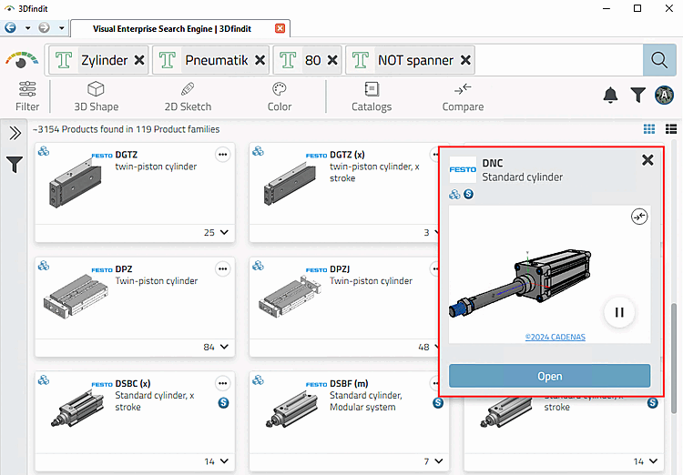 Restrict the results using the facet filter if necessary: E.g. under Units with mm or inches [Inch] or under Catalogs to specific manufacturers.