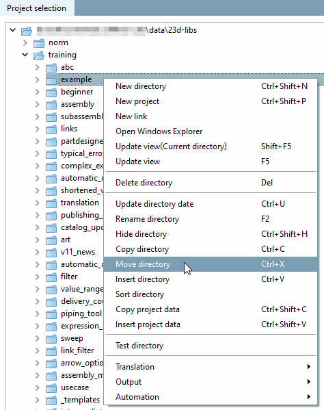 [18] If it must be assumed that other directories (assemblies whose components refer to this directory) are also affected by moving the directory, check Adjust references in assemblies [Adapt links in assemblies] and enter the path of the assemblies [Assemblies path] (Browse ... ). See Section 5.8.2.1.7, “ Rename directory.