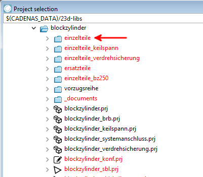 Initial situation: Directory "einzelteile" (single parts) shall be hidden.
