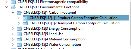 The corresponding data is modeled in our classification system as part of the classes CNSELEK|5|12|1|1 (Product Carbon Footprint Calculation; PCF) and CNSELEK|5|12|1|2 (Transport Footprint Calculation; TCF).