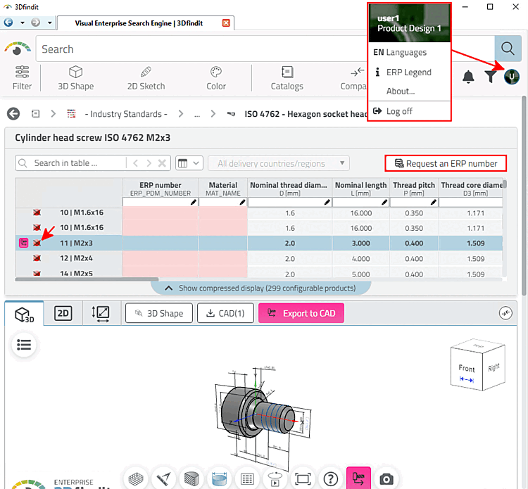 The Settings for 3Dfindit are made in PARTadmin >