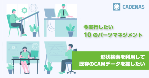 「今実行したい10のパーツマネジメント」では、CADENASの戦略的パーツマネジメントPARTsolutionsでどんなことができるのかをご紹介します。第4回は3Dデータの形状検索を元に既存のCAMデータを探す応用ソリューションです。