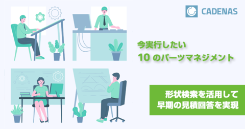 「今実行したい10のパーツマネジメント」では、CADENASの戦略的パーツマネジメントPARTsolutionsでどんなことができるのかをご紹介します。第5回は早期の見積提出のために形状検索を活用するソリューションです。