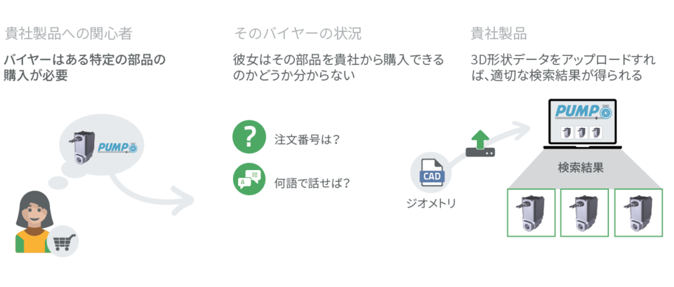 覚えたくはありません。形状検索機能を使えば、貴社顧客は要望するコンポーネントの3Dデータをアップロード